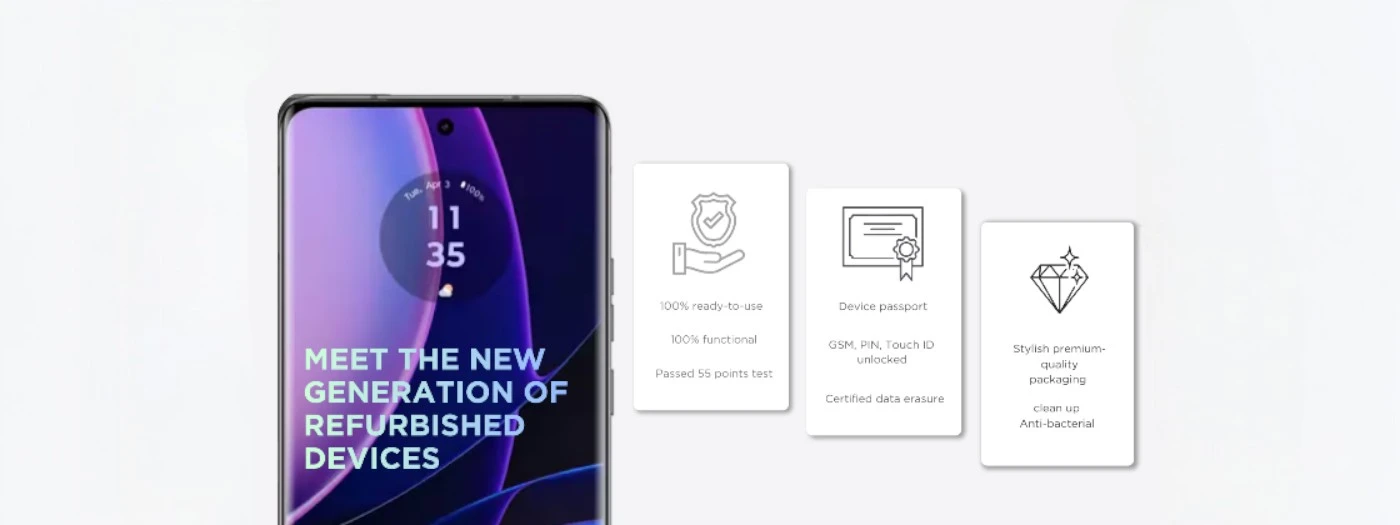 Motorola focuses on simplicity and speed. Each smartphone undergoes a detailed technical and visual inspection, including Android system performance, display quality, cameras, audio, connectivity, and battery condition. Every device is cleaned, disinfected, and prepared for immediate use. A personalized diagnostic report confirms full functionality.