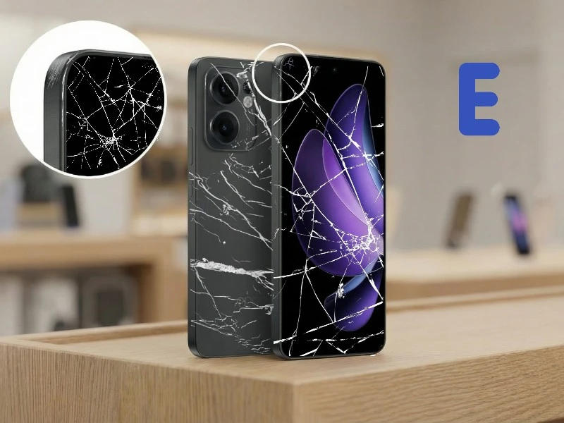 Telefony klasy E mają poważne uszkodzenia, lecz się uruchamiają. Ekran może mieć wypalenia, linie, plamy lub problemy z dotykiem. Może brakować elementów jak tylna klapka czy bateria. Mogą też zawierać wady klasy D. Funkcjonalność jest ograniczona - nadają się głównie do naprawy lub na części.